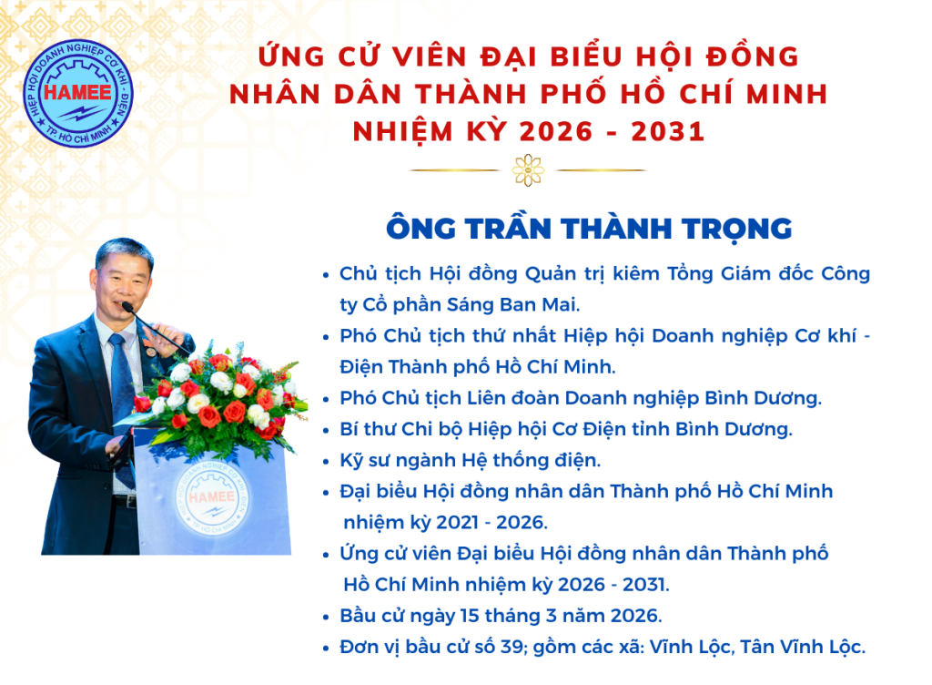 - Ứng cử viên Đại biểu HĐND TP.HCM nhiệm kỳ 2026 – 2031