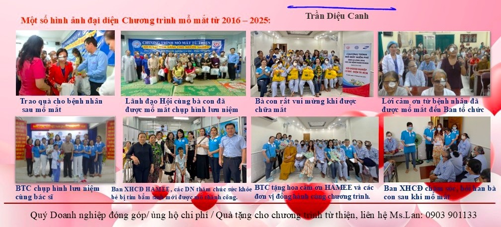 Theo đó, chương trình mổ mắt miễn phí dành cho người mắc các bệnh về mắt như cườm và đục thủy tinh thể sẽ được tổ chức tại nhiều tỉnh, thành. Đối tượng thụ hưởng bao gồm bà con có hoàn cảnh khó khăn và thân nhân của hội viên HAMEE. Đây là hoạt động thiết thực, góp phần mang lại ánh sáng, cải thiện chất lượng cuộc sống cho người dân.